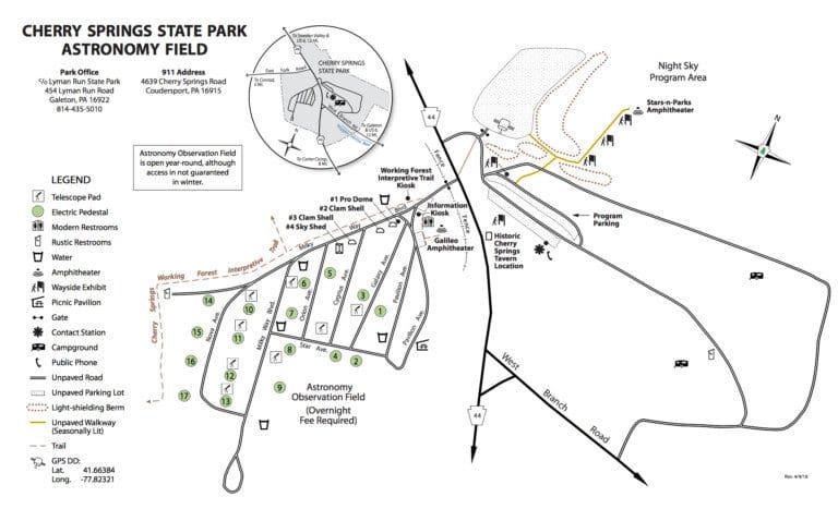 Check out the Cherry Springs Clear Sky Chart for up-to-date look at how the skies are shaping up for your visit. Look for dark blue squares in the row marked “Cloud Cover” — dark blue means clear skies for optimal viewing conditions.